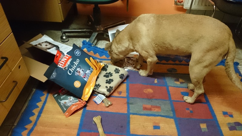 Ezúton köszönjük Ines-nek, hogy ilyen messziről is gondolt a kutyusainkra és megajándékozta Elizát mindenféle finomsággal!