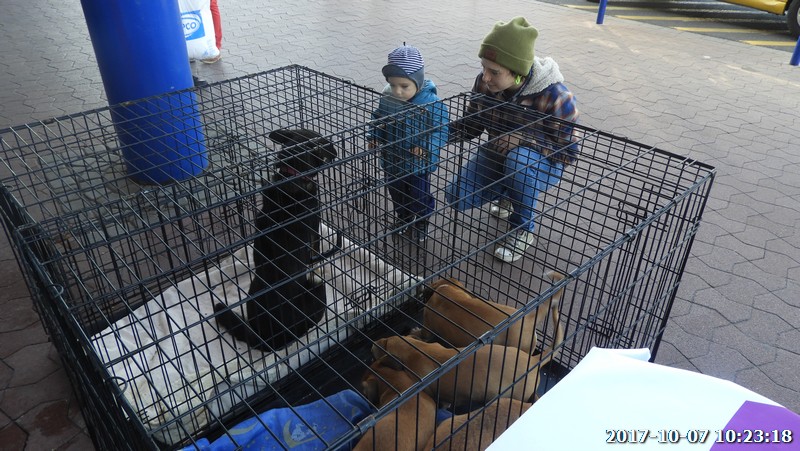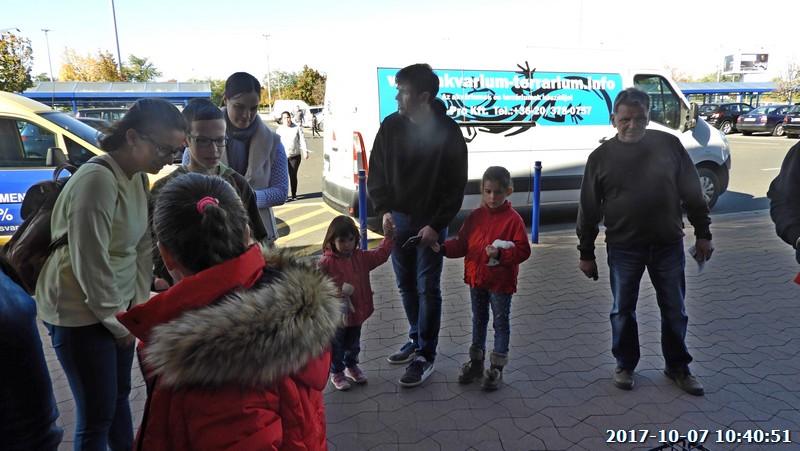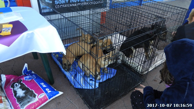 Reggel korán keltünk előkészítettük kedvenceinket az útra, 9 órakor már az áruház bejáratánál álltunk kis pártfogoltjainkkal, és vártuk az érdeklődőket. Nagyon sokan jöttek…. és volt sok örökbefogadónk is. Megnézték, megsimogatták kedvenceinket, ezután mentek az áruházba vásárolni, a bevásárlásból jutott nekünk is, a nap végére 12 zsák tápot és 19 db nagy dobozos konzerv gyűlt össze. Voltak akik az ivartalanítási Akció miatt jöttek kupont igényelni, nagyon jó volt a személyes kapcsolat kontaktus, megtudtuk beszélni az ivartalanítás fontosságát, mikor milyen idős kortól lehet vinni a házi kedvenceket a műtétre. Elmondtuk alapítványunk a 1%-ból finanszírozza az ivartalanítást, felhívtuk figyelmüket mindig rendelkezzenek az 1%-ról, és ha ezt alapítványunknak adják azt köszönjük, nagyrészt vissza adjuk, mint pl. az ivartalanítási akció, kutyaházakat vásárolunk belőle azzal is segítünk az arra rászorulókat.