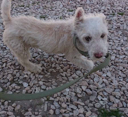 Bejelentést kaptunk miszerint Katonatelepen egy ingatlanon éheztetnek egy amúgy is csont sovány kutyát. Kimentünk a megadott címre és megállapítottuk, hogy a bejelentő nem túlzott.