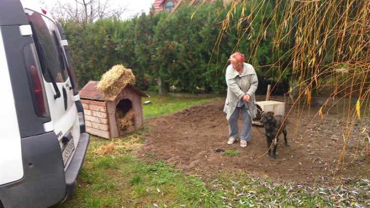 Kecskemét Belsőnyírben egy szegény család kutyusán segítettünk, élelemmel ,kutyaházzal és szalmával.