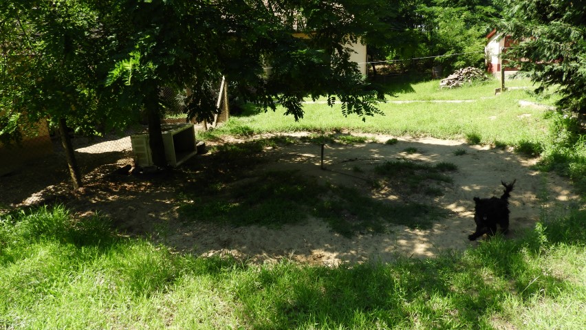 Jó ideig nem jött ki senki majd egy idős hölgy jött, nehezen tud mozogni, ezért is van láncon mert fel lök játékból is mondta. De szabadon is szokott lenni nem rég kötöttem meg. Ezt ismerjük ,kértük engedje el lássuk hogy reagál a kis kutyus. Elengedése után is a helyén maradt, majd szaladt egy kőrt és vissza ment a helyére. Valószínűleg szokott szabadon is lenni. Kértük mondjon le róla és mi keresünk számára gazdit ahol mindig szabadon lehet, de ő ragaszkodott a kutyushoz és nem mondott le. Rendszeresen járunk erre mondtuk, figyelni fogjuk mennyit van szabadon. A kutyus jó állapotban van hitelt kell adni a gazdinak, hogy valóban el szokta engedni, és végül is nincs rossz sora.