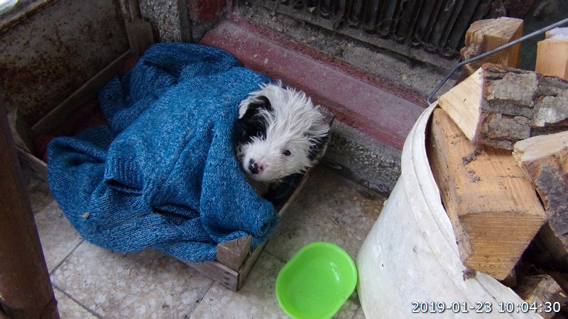 Bejelentést kaptunk…. “a házunk elé kiraktak egy néhány hetes kiskutyát, hóban fagyban segítsenek!” Mentünk bevitték a kutyust az előtérbe, betakargatták enni inni adtak neki.