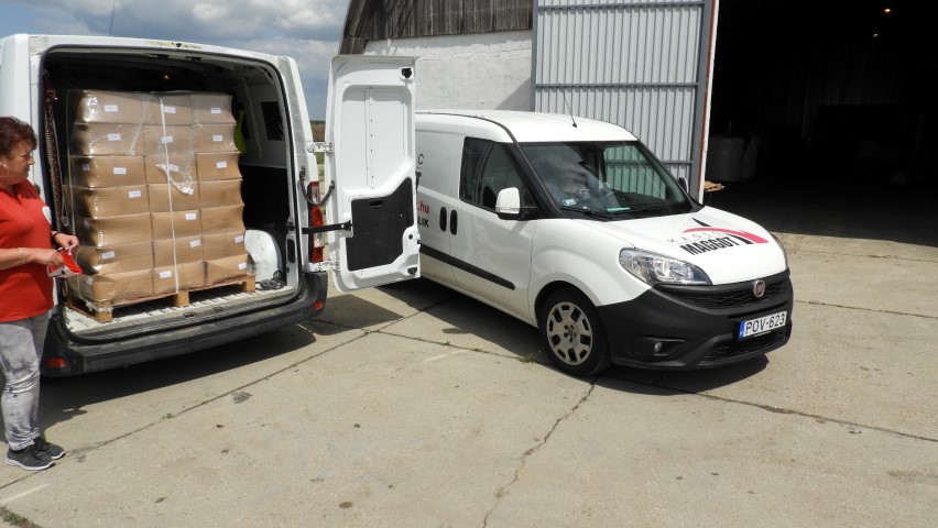 A Csali Hungária Kft Vaskúti telepére mentünk a szalámi adományért, kaptunk egy raklappal. Ezúton is köszönet érte, nagy segítség ez kutyusaink táplálásában