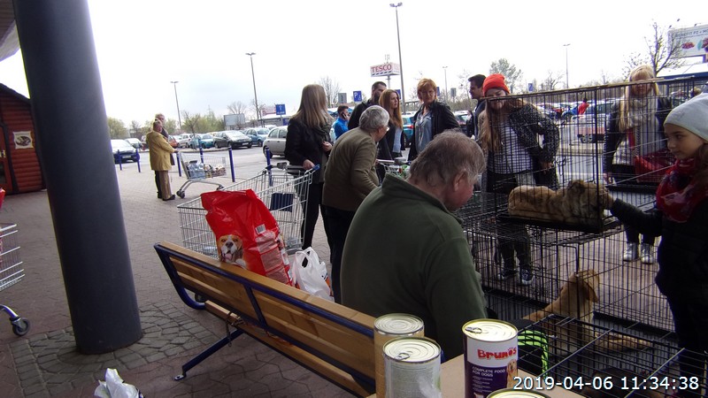 Örökbefogadó napot tartottunk a Tesco áruház bejáratánál. Összeszedtük kis árváinkat, 10 órára érkeztünk, kipakoltunk. Még nem és végeztünk, a kutyusok elhelyezésével, már akkor sokan jöttek hozzánk.
