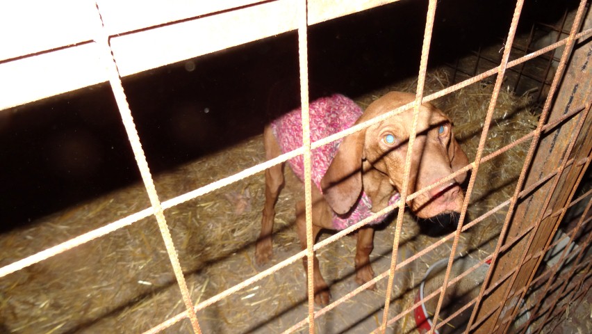 A vizslát már alig él…kiszáradva csont soványan , láncon élt. Háza volt de se szalma se rongy semmi alatta! Elhelyeztük, megetettük… Holnap visszük orvoshoz, féregtelenítve lesz, és finom minőségi tápot, konzervet fog kapni had erősödjön….