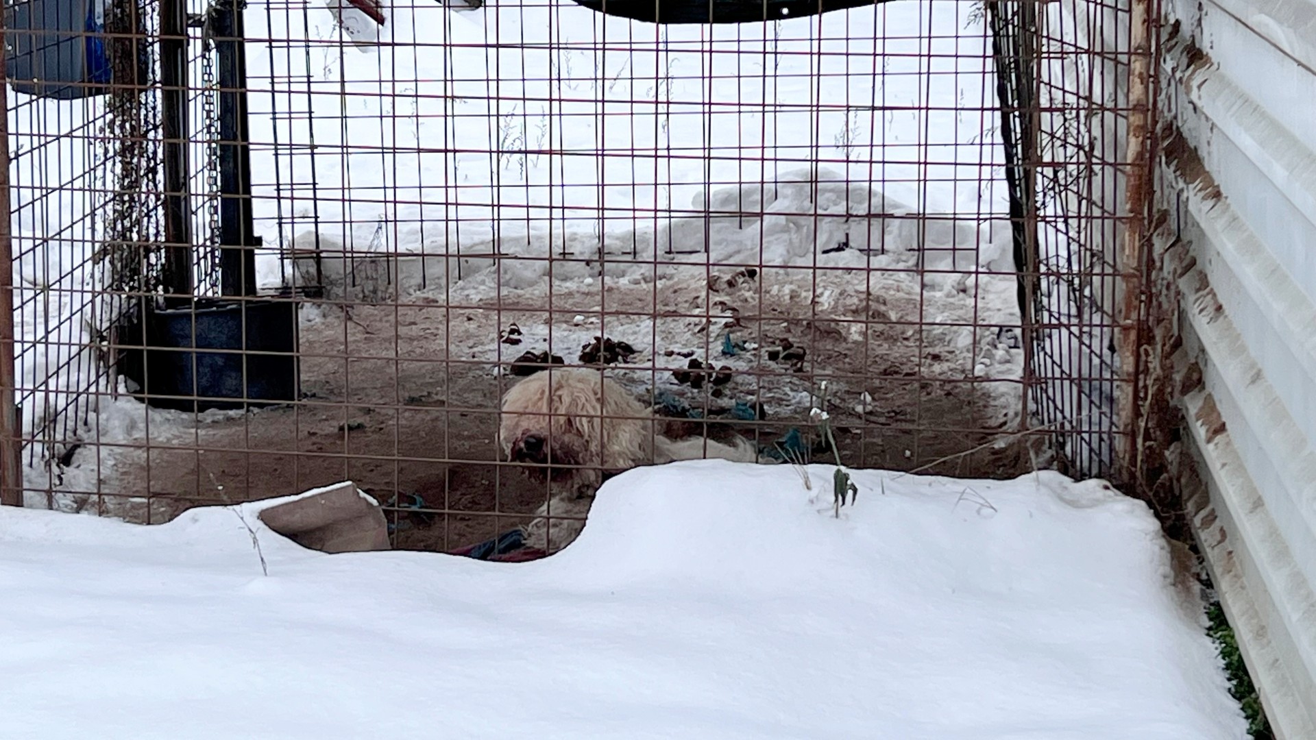 A bejelentő elmondta 2 nagytestű kutya van egy kis kennelben nincs rendes tető felettük házuk sincs. Valós volt a bejelentés de már csak egy kutya volt nem tudtunk bejutni a területre, nem volt senki otthon.