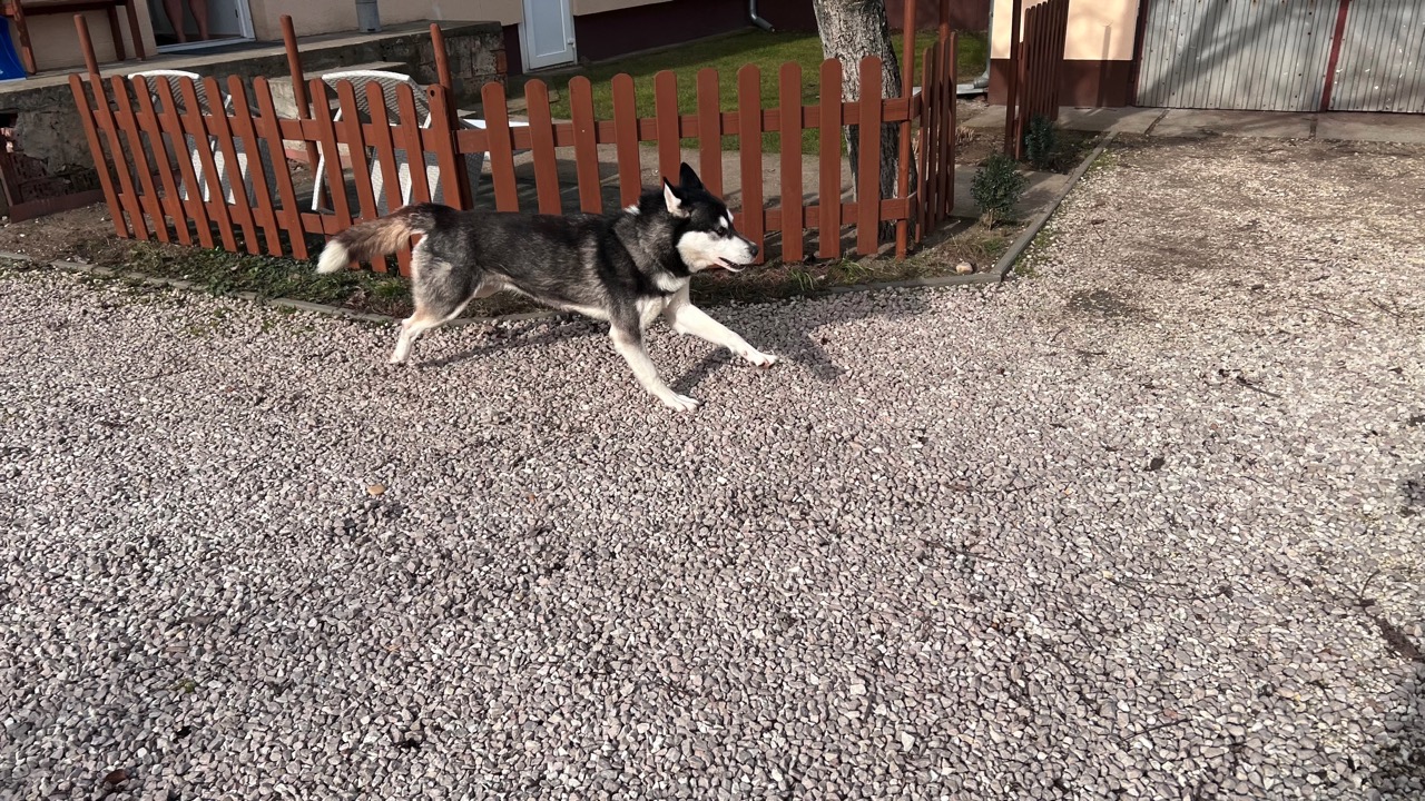 A bejelentő elmondása szerint a címen egy Husky él állandóan kennelbe zárva soha nincs kiengedve sétáltatva. Megnéztük valóban így van e. Érkeztünkkor a kutyus kint volt az udvaron.